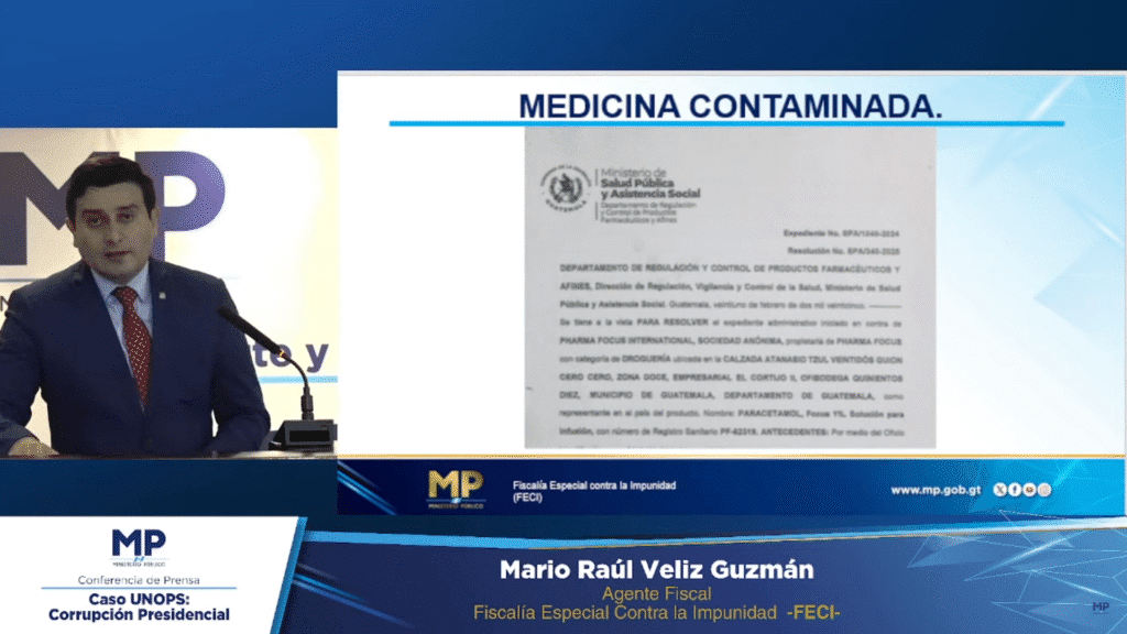 De acuerdo con la Fiscalía, el convenio habría sido firmado de forma unilateral por el Ministerio de Salud, sin contar con la intervención de entidades responsables de fiscalizar el uso de los recursos públicos, como el Ministerio de Finanzas, la Contraloría General de Cuentas (CGC) y la Procuraduría General de la Nación (PGN).