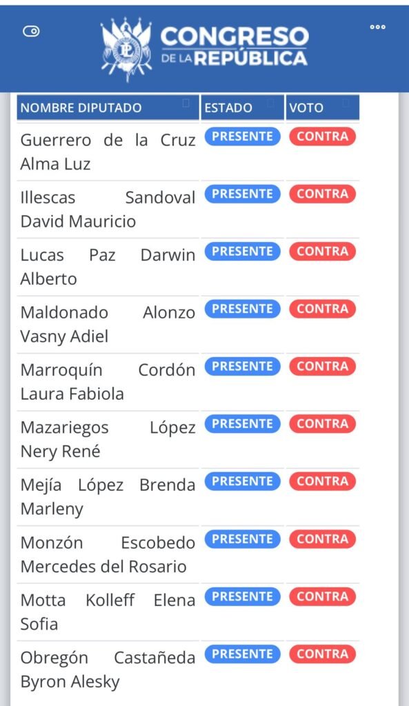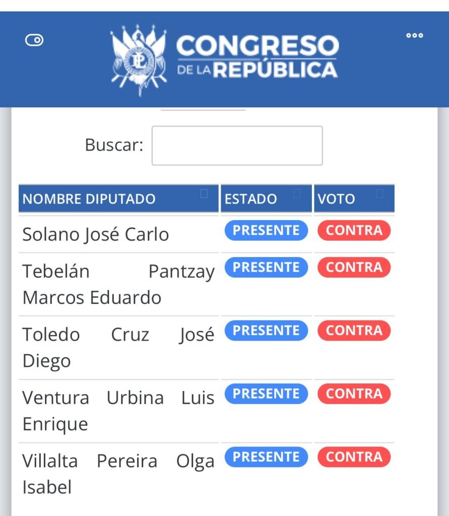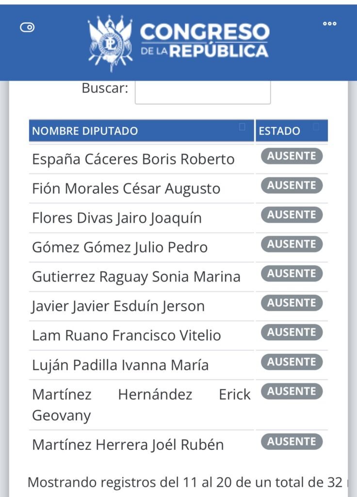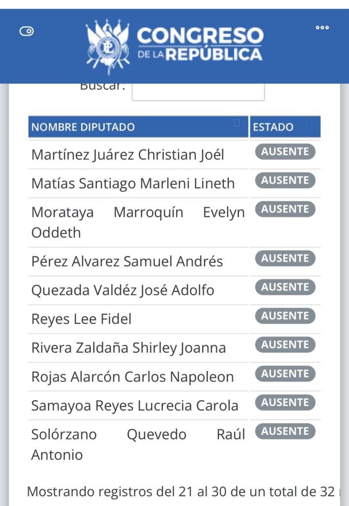 Un total de 35 legisladores estuvieron presentes, pero votaron en contra de la iniciativa. Entre ellos figuran: