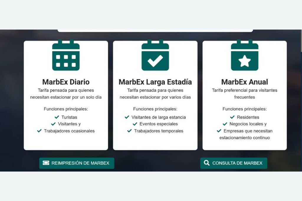 - MarbEx Diario: pensado para quienes necesitan estacionar por un solo día. Ideal para turistas, visitantes o trabajadores ocasionales que realizan actividades de corta duración en la ciudad.